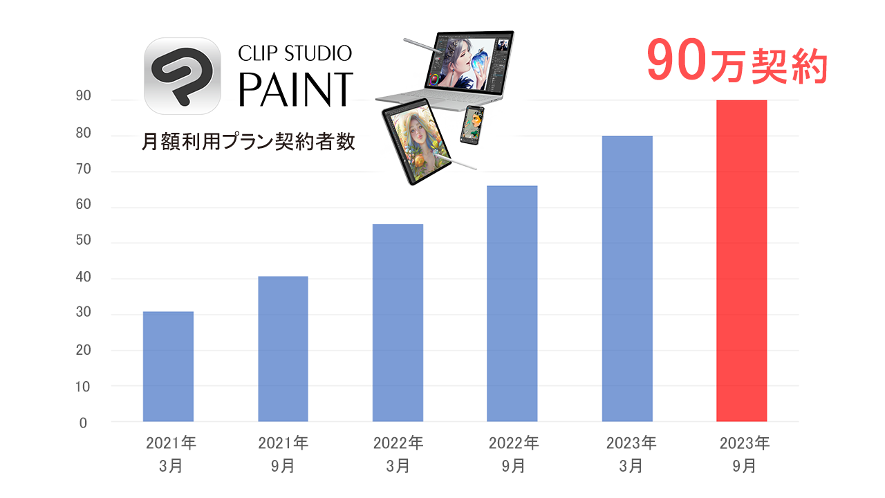 クリスタ買い切りの廃止予定は今はありませんが、月額利用プランのサブスク契約数は年々増加。